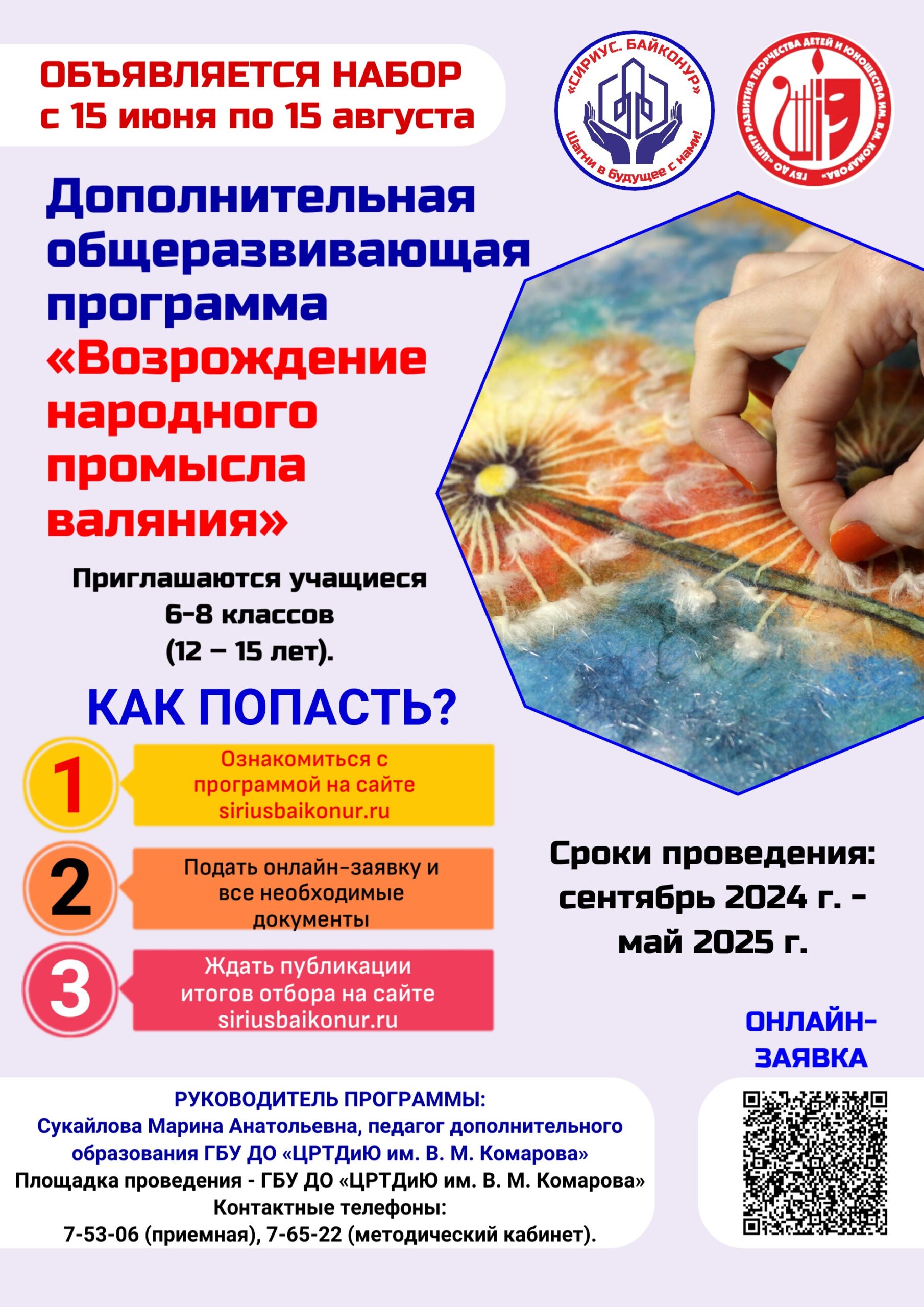 Руководитель программы: Сукайлова Марина Анатольевна, педагог дополнительного образования ГБУ ДО «ЦРТДиЮ им. В. М. Комарова»