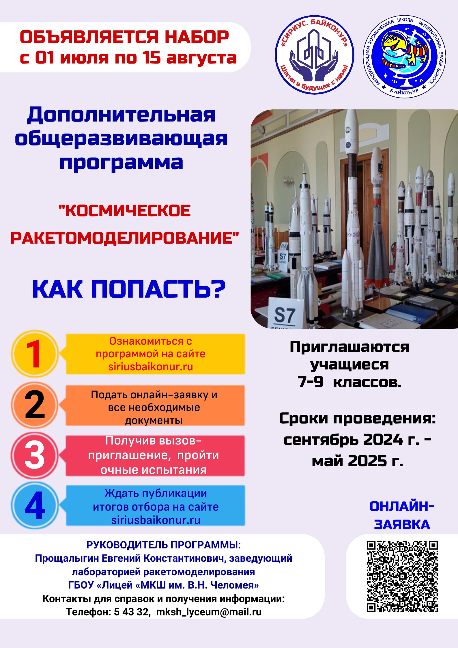 Руководитель программы: Прощалыгин Евгений Константинович, заведующий лабораторией ракетомоделирования ГБОУ «Лицей «МКШ им. В.Н. Челомея»