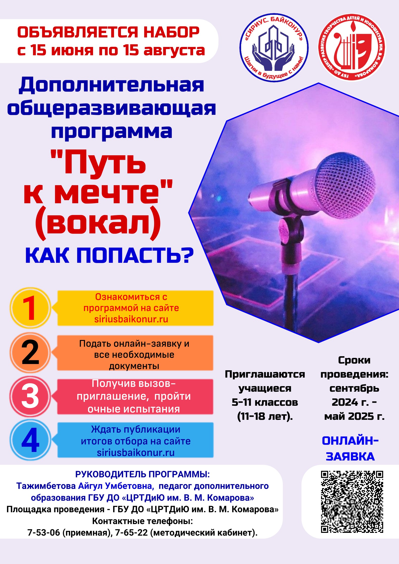 Руководитель программы: Тажимбетова Айгул Умбетовна, педагог дополнительного образования ГБУ ДО «ЦРТДиЮ им. В. М. Комарова»