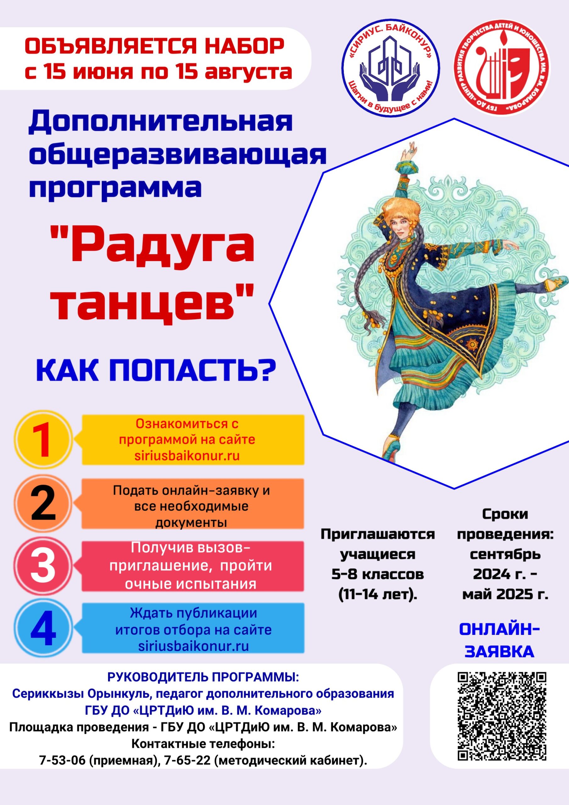 Для участия в Программе приглашаются учащиеся 5-8 классов общеобразовательных организаций г. Байконур, демонстрирующие результаты в предметной области «Хореография» и прошедшие отбор в соответствии с Положением о проведении Программы. Отбор кандидата на участие в Программе предусматривает два тура: дистанционный и очный.