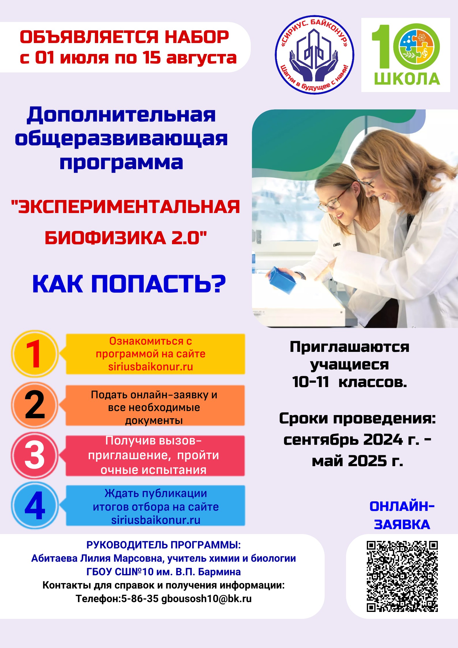 Руководитель программы: Абитаева Лилия Марсовна, учитель химии и биологии ГБОУ СШ№10 им. В.П. Бармина