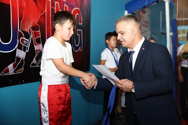 На торжественной церемонии присутствовали заместитель главы администрации города Николай Адасев, начальник Управления образованием Елена Ким, заместитель директора спортивной школы Дилдора Усманова, директор Центра творчества детей и юношества им. В.М. Комарова Ирина Кузьмина. Мероприятие началось с показательных выступлений воспитанников – первых участников учебно-тренировочных сборов секции каратэ-до.