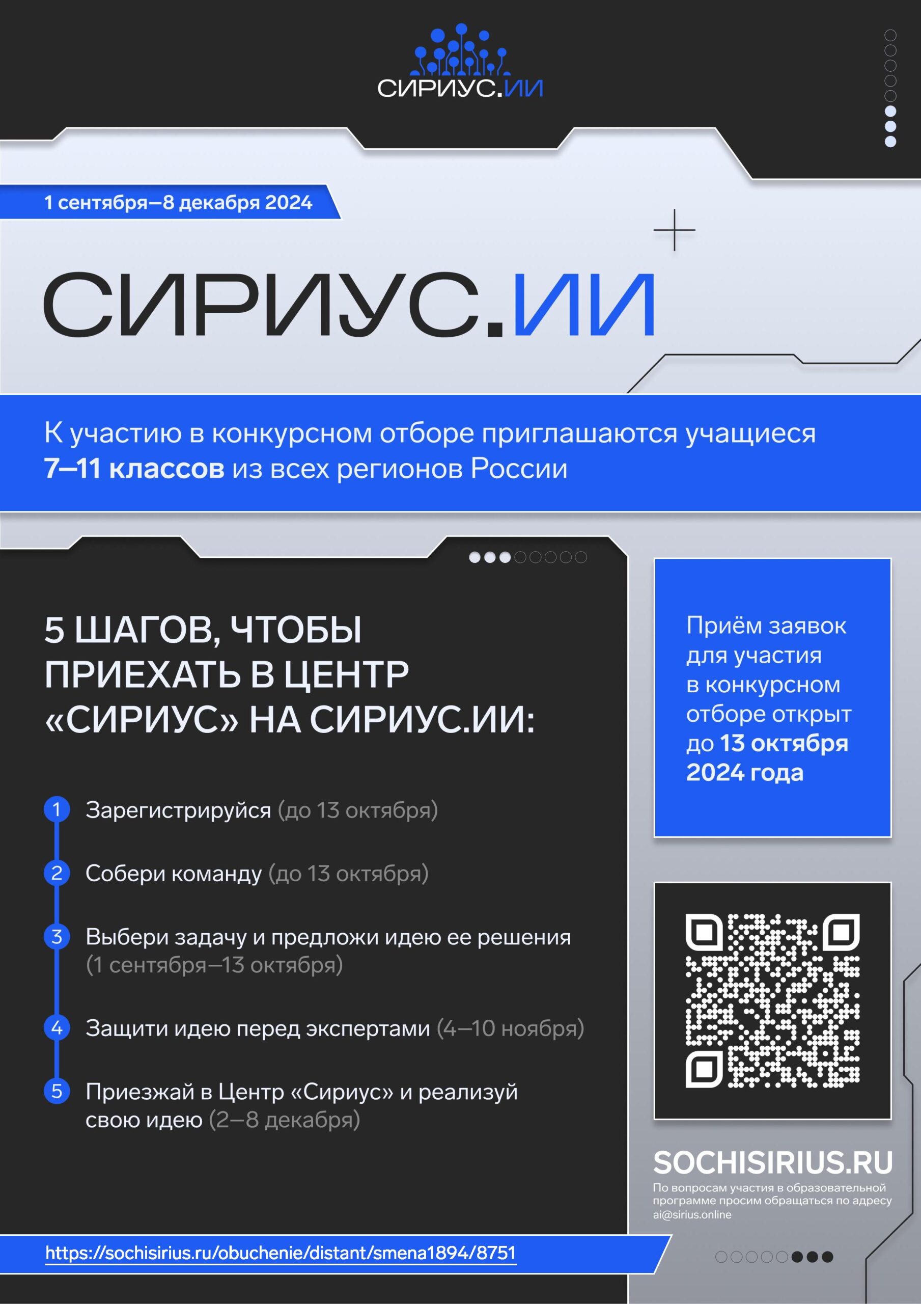 Сроки регистрации на Программу «Сириус.ИИ»: 01 сентября – 13 октября 2024 года.