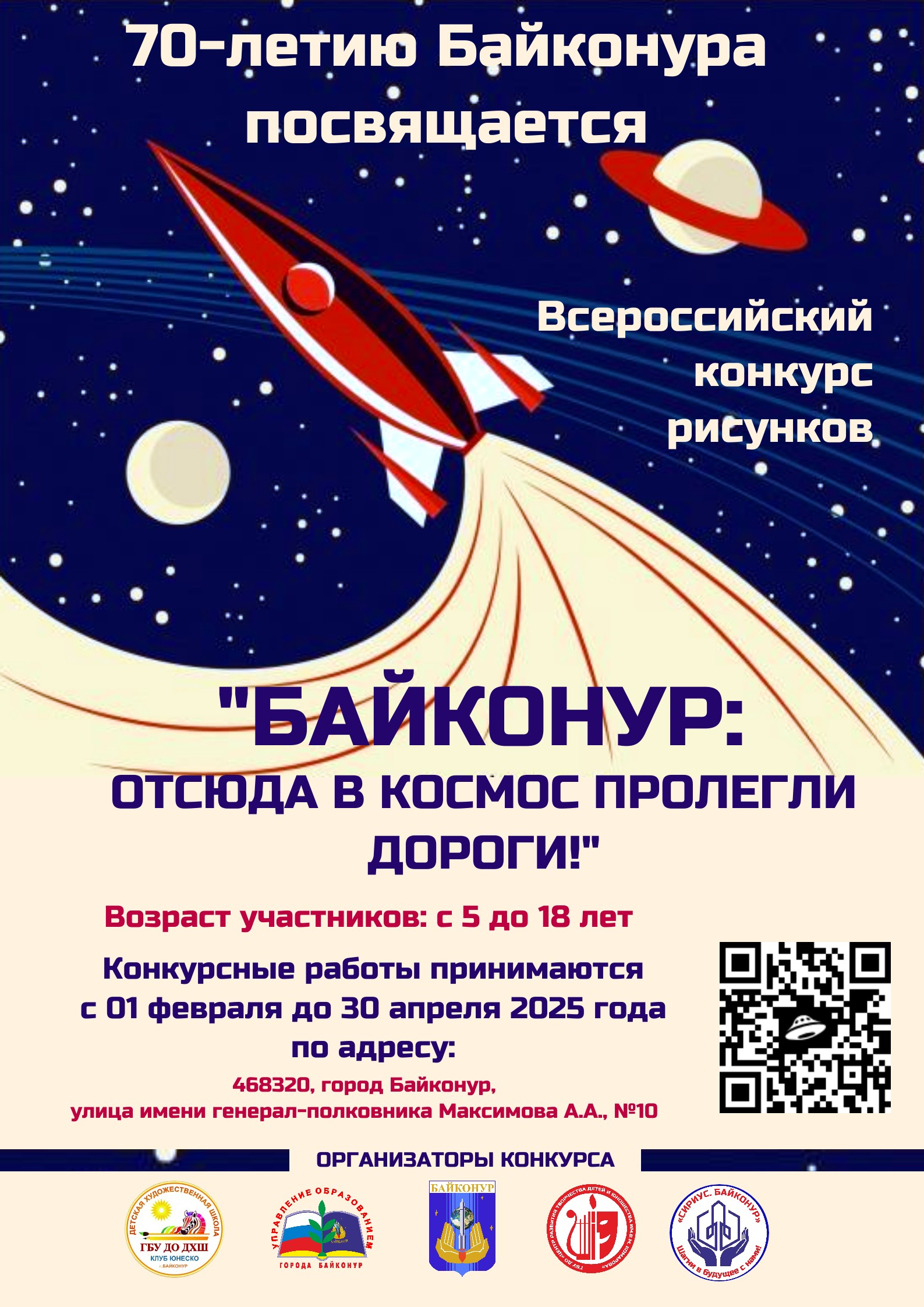 В этом году, в рамках празднования 70-летия космодрома и города Байконур, завершился Всероссийский конкурс рисунков, который стал ярким событием для детей и молодежи, увлеченных космической тематикой. Конкурс под названием «Байконур: отсюда в космос пролегли дороги!» был учрежден администрацией города Байконур и собрал участников со всей страны, желающих выразить свое отношение к космосу и истории космодрома.