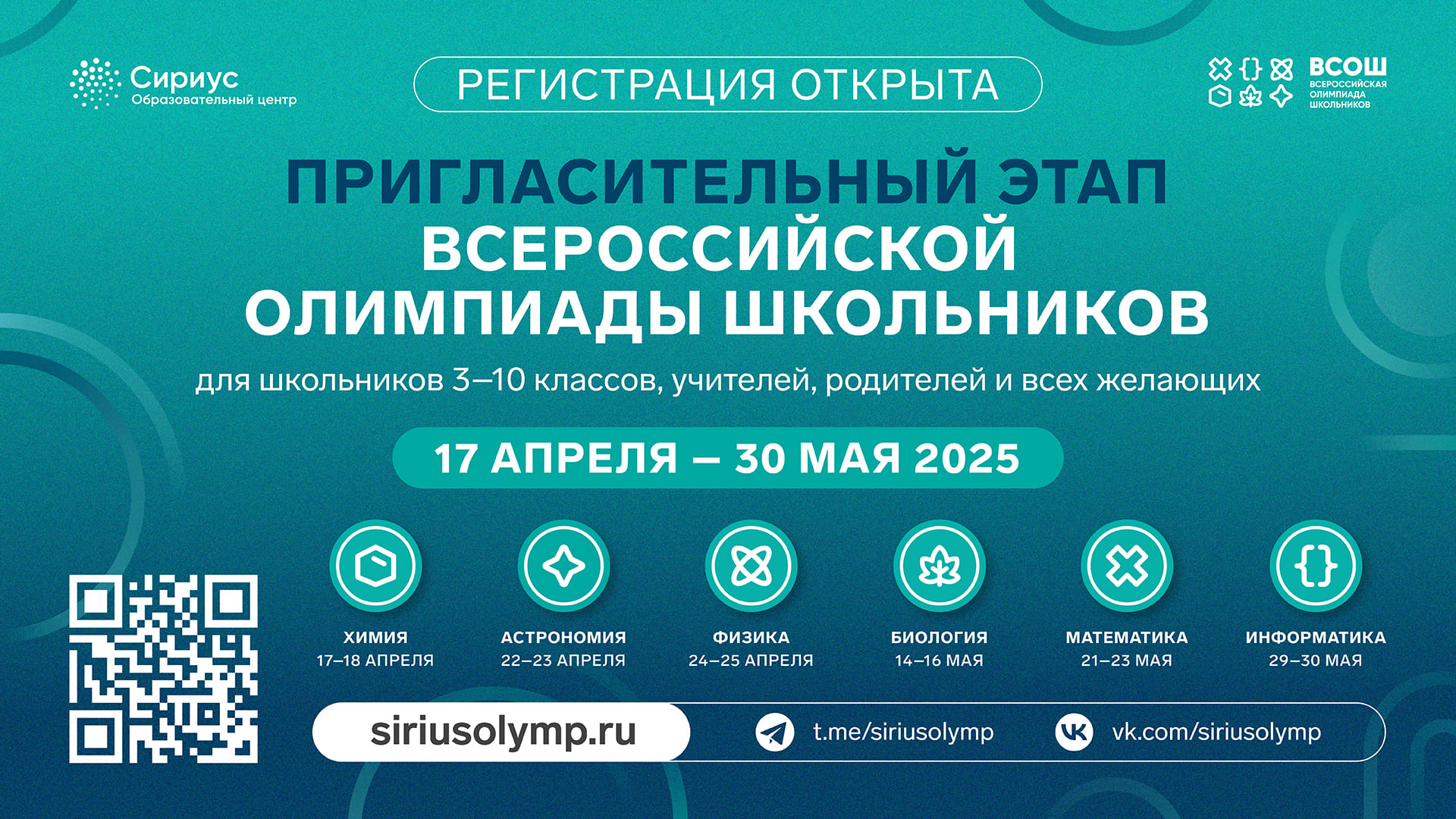 Всероссийская олимпиада школьников – это общественное движение, которое объединяет по всей России большое количество детей и взрослых. И это действительно так. Олимпиада не уходит на каникулы. И даже когда очные туры завершены, олимпиада продолжается дистанционно. На сайте Всероссийской олимпиады школьников уже стартовал пригласительный этап по шести предметам, а в соцсетях идут конкурсы от образовательного фонда «Талант и Успех». Региональный центр «Сириус. Байконур» стал частью этого движения, размещая на своей странице в социальной сети ВКонтакте задания.