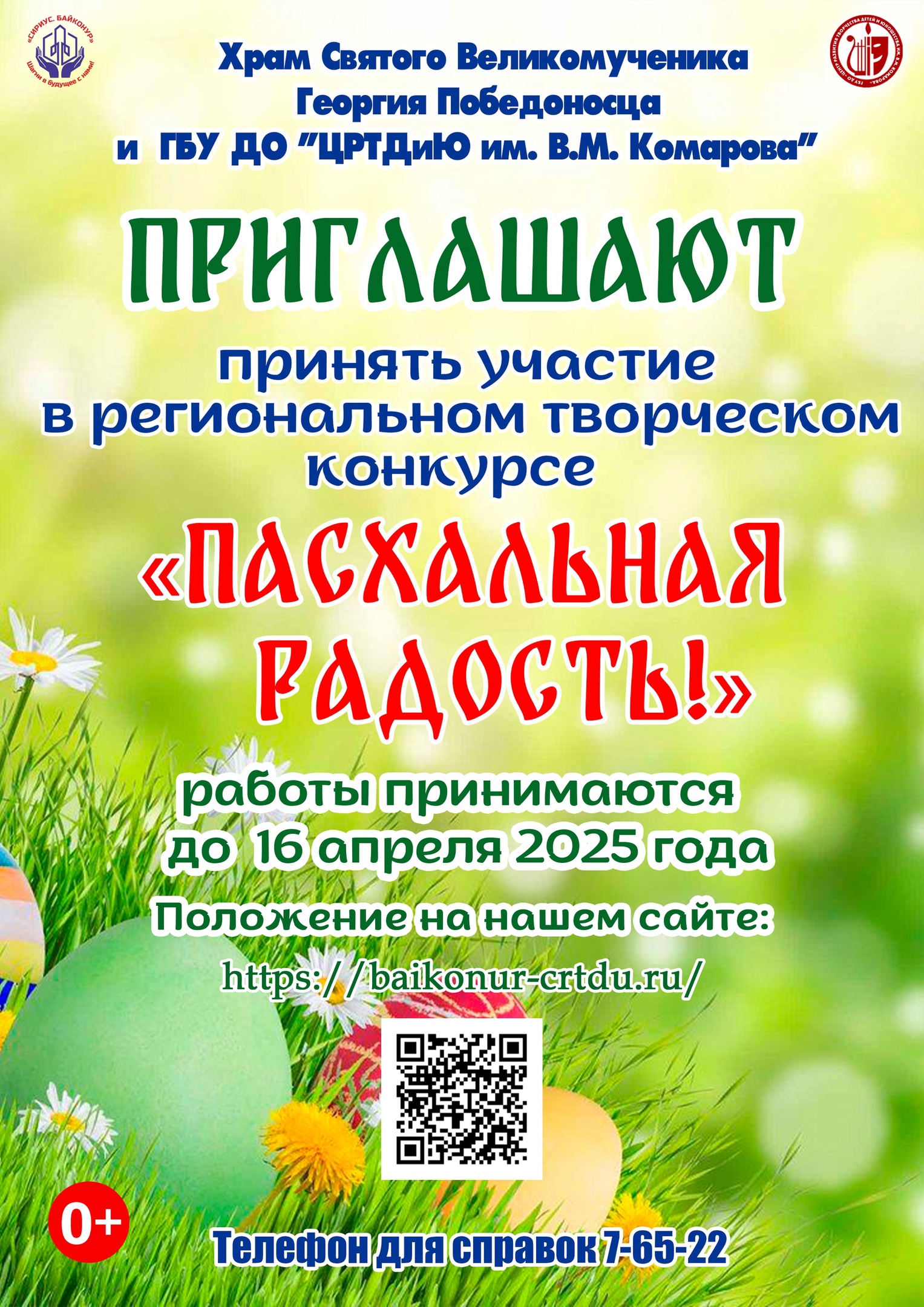 В преддверии торжественного и радостного христианского праздника Пасха ГБУ ДО «ЦРТДиЮ им. В.М. Комарова» объявляет о проведении регионального творческого конкурса «Пасхальная радость» среди учащихся образовательных организаций города Байконура. С 18 апреля по 22 апреля каждый желающий может принять участие в творческом конкурсе «Пасхальная радость!»