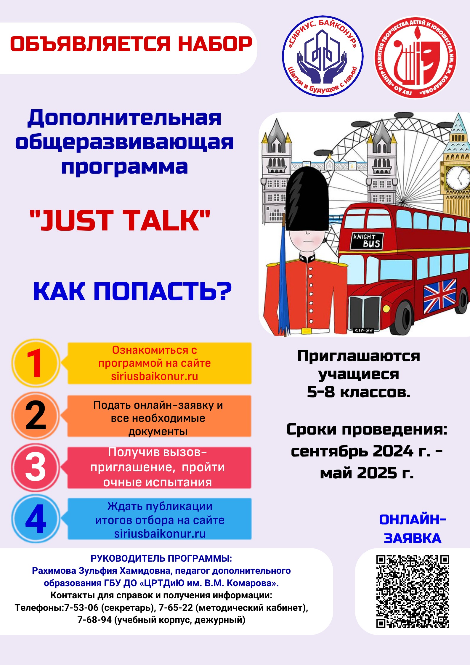Регистрация осуществляется с 01 июля по 15 августа 2024 года. Отбор проходит в два этапа (дистанционный и очный).